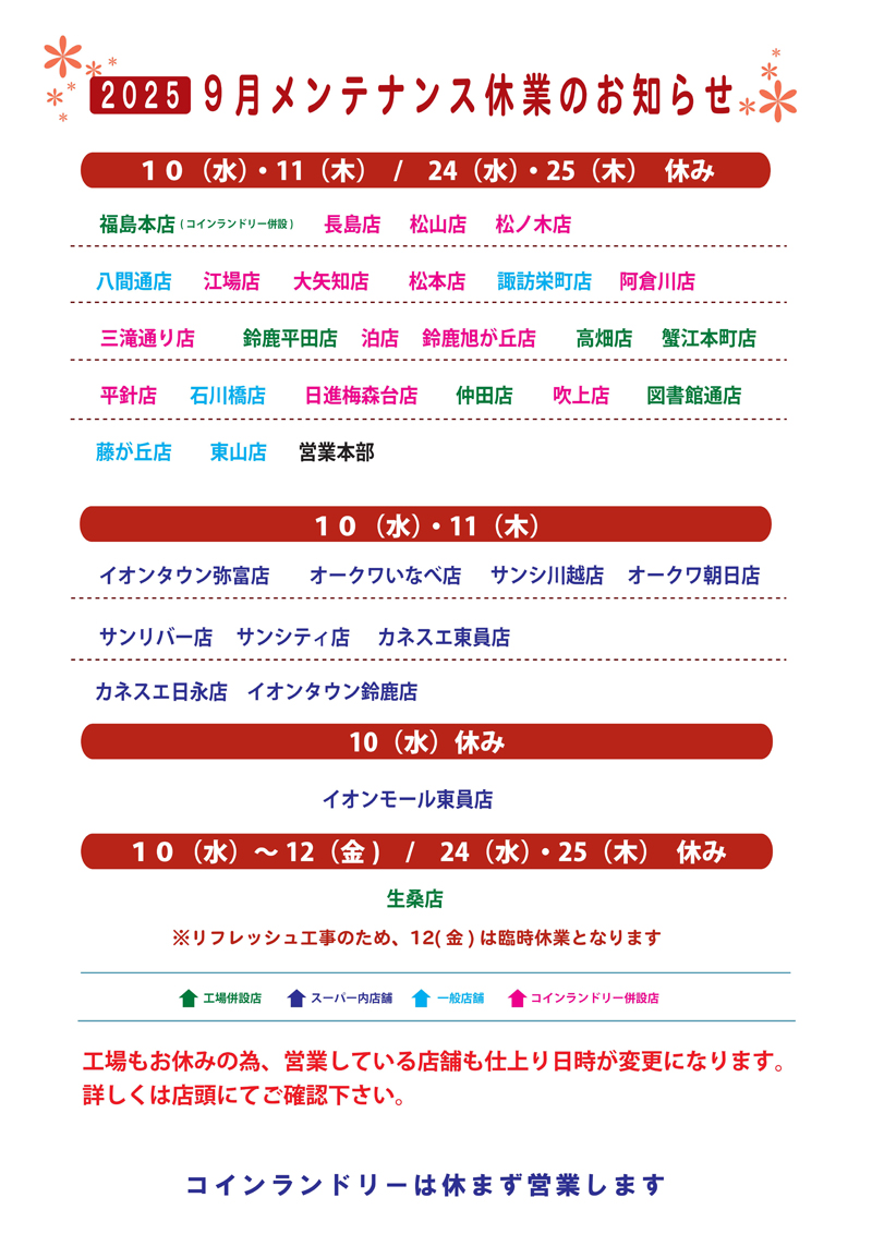 【9月】メンテナンス休業のお知らせ
